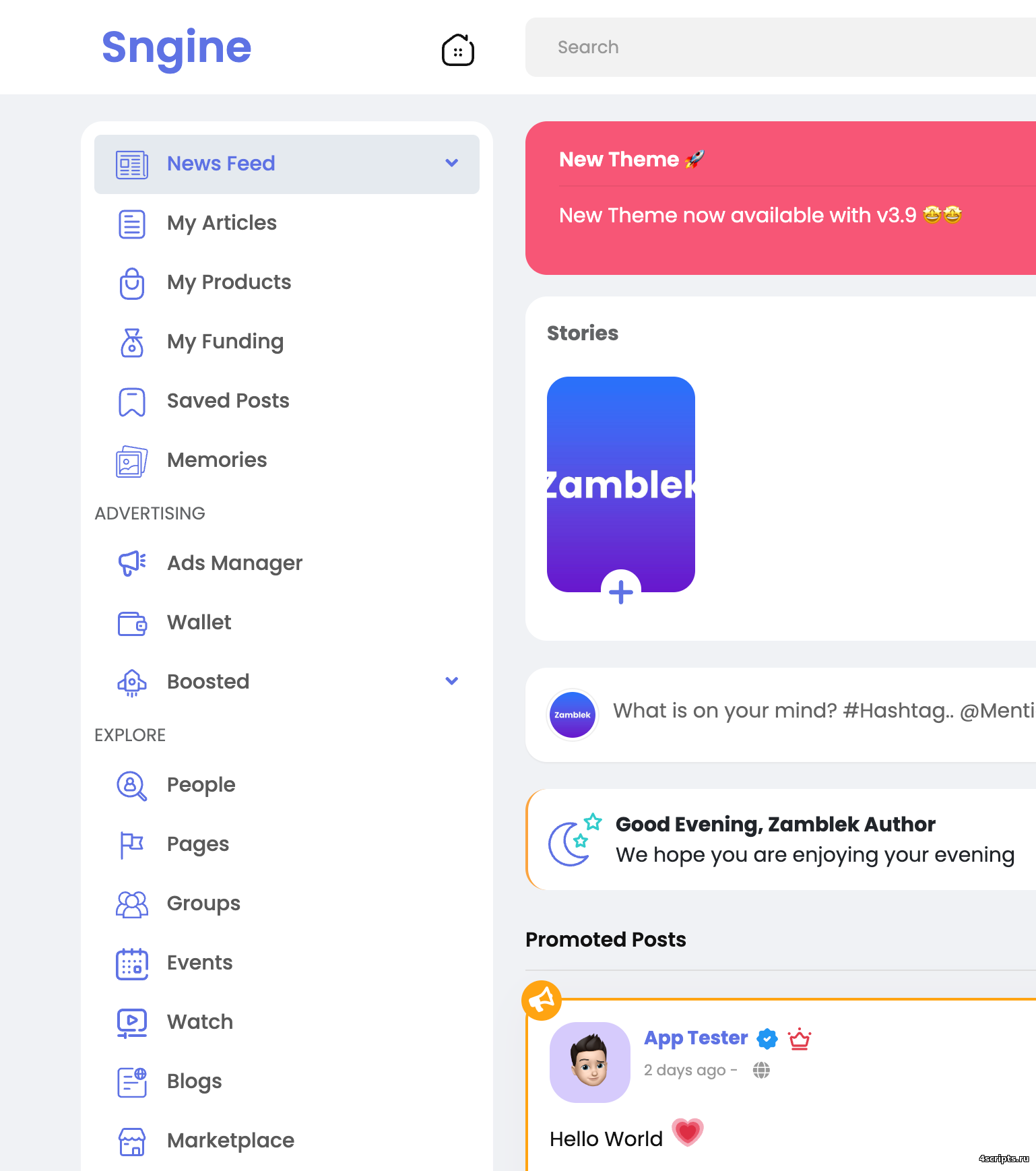 Sngine 4.2.1 - лучший PHP-скрипт для создания социальных сетей